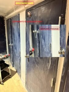 All sprinkler (gicleur) room doors in every building must be locked with a key. Doors cannot have a passage lever or be propped open.
